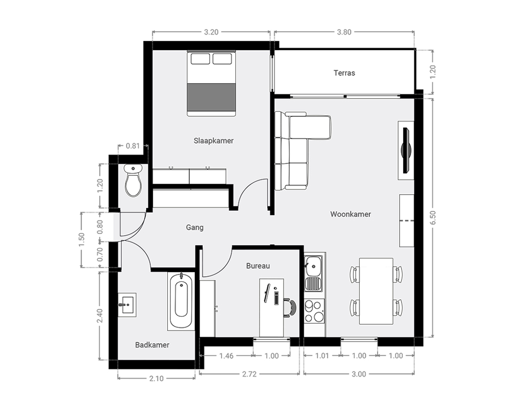 | Totale opp. m² incl. terras: | 100 |